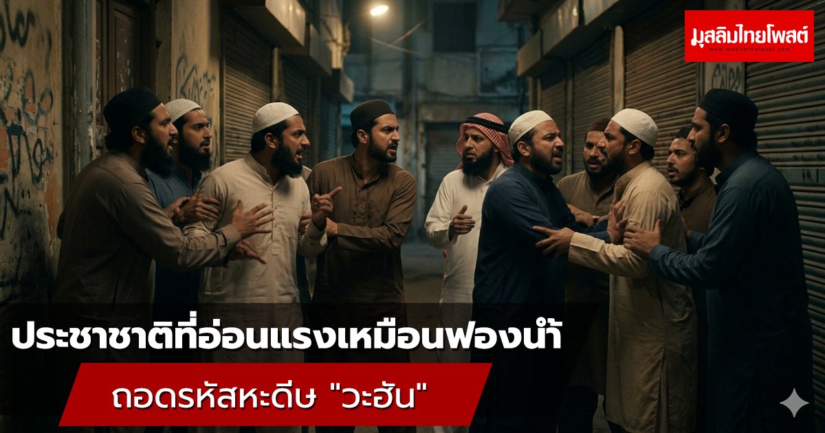 ท่านนบี (ซ.ล.) ได้เปรียบเทียบสถานการณ์ของมุสลิมในยุคหนึ่งว่า จะถูกบรรดาประชาชาติต่างๆ รุมล้อมเข้าหา เหมือนกับ "คนที่ล้อมวงกินอาหารในถาด" ภาพนี้สื่อถึงความอ่อนแออย่างถึงที่สุดของมุสลิม จนกลายเป็นเพียง "อาหาร" หรือ "เหยื่อ" ที่ใครๆ ก็สามารถตักตวงผลประโยชน์หรือรุมทำร้ายได้อย่างง่ายดาย โดยที่ศัตรูไม่ได้มีความเกรงขามต่อมุสลิมเลยแม้แต่น้อย